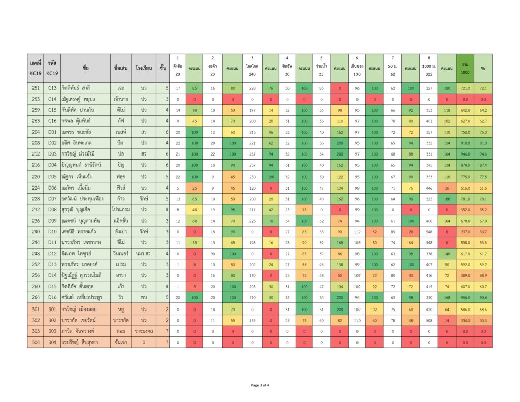คะแนน KC Family 2569 สอบพละครั้งที่ 3