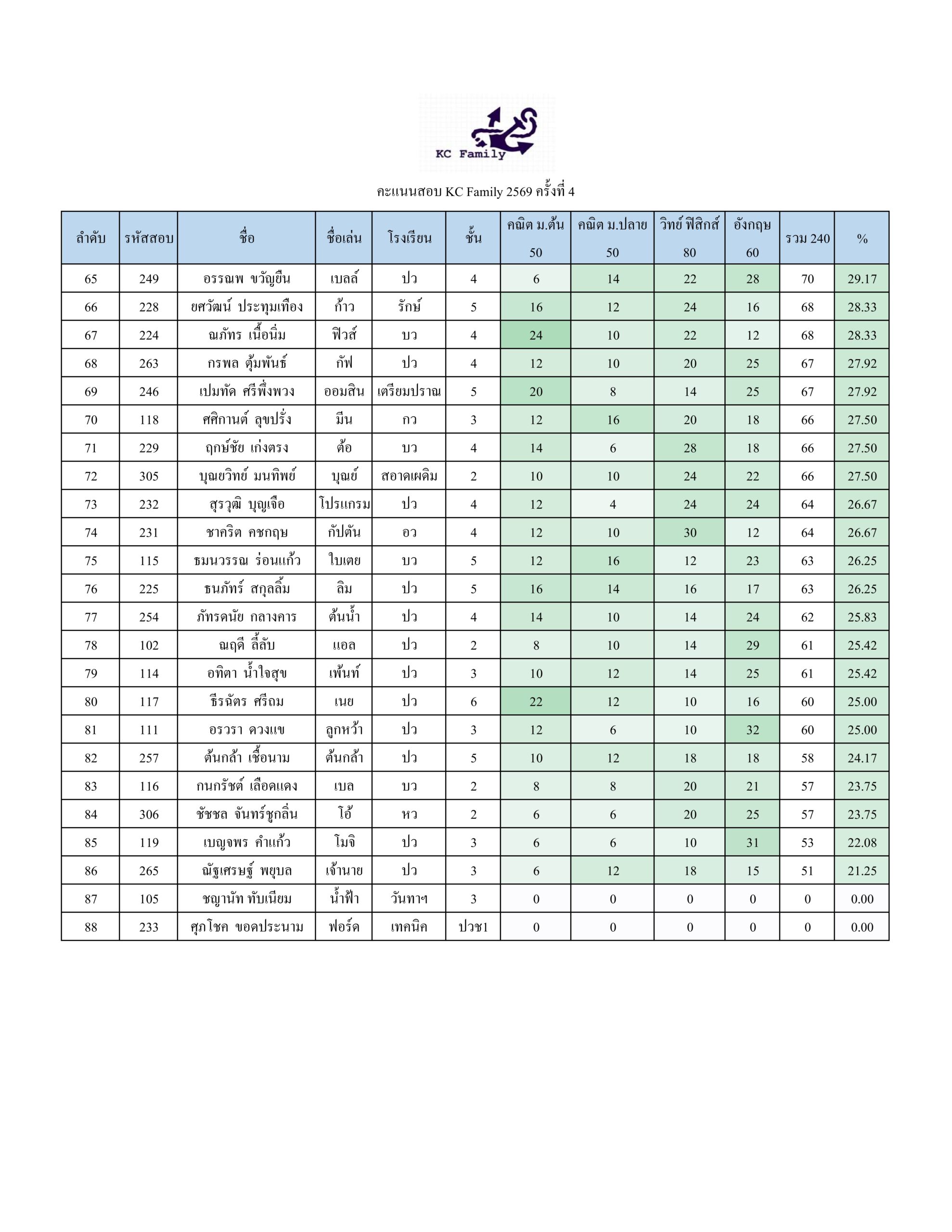 ประกาศผลสอบ KC Family 2568 ครั้งที่ 4 วันที่ 10 พ.ย.67 (คะแนนรอบสุดท้าย วิชาการ + พละ) ประกาศผลสอบ KC Family 2568 ครั้งที่ 4 วันที่...